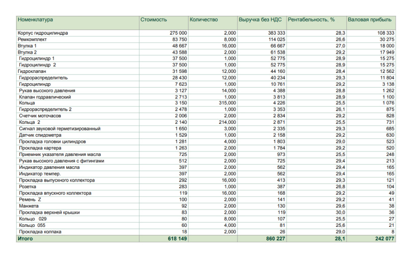 настроили расчет рентабельности каждой товарной позиции